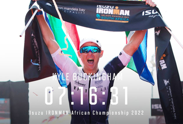 In a tight race with completely different dynamics, 2018 Ironman Africa winner Kyle Buckingham eked out the men’s win by a 19 seconds margin over fellow South African Bradley Weiss. Buckingham began with a 7th-best 8:08 swim that left him 13 seconds back of Nils Frommhold, 15 seconds ahead of daylong rival Bradley Weiss, and 37 seconds ahead of pre-race favorite Joe Skipper of Great Britain.