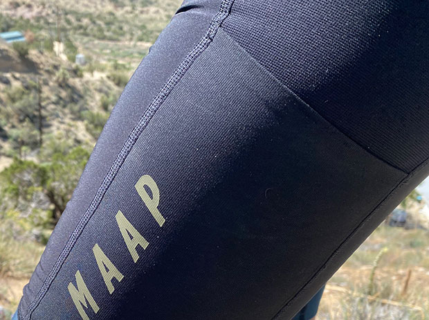 I’ve been using a lot of apparel from different brands and yet again it’s gravel to the rescue. You may have noticed this. The cargo short found its way into cycling quite a few years back, but as an MTB and then gravel baggy, hairy-legged, granolahead apparel piece. More recently the classic cycling bib short and that cargo short mated and had a baby: the road race style cycling bib with side pockets. Some with zippers, some without. This is just so much better for things that aren’t that bulky, like your wallet, money, phone. What you see above and below is a pair of pockets, one on each side, and this is MAAP’s Alt Road Cargo Bib.