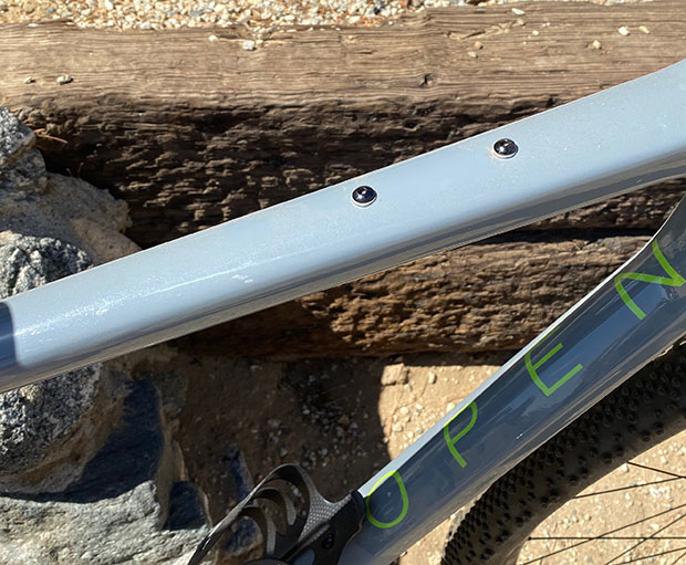 I want to talk about storage because it’s just high time the road market got past its attachment to carrying food and sundries in a pocket sewed into the back of a shirt. Better storage options have made their way into road-adjacent cycling sub-specialties, and it’s notable how top tube storage jumped from triathlon right over road and into gravel. There is absolutely nothing preventing bike brands from placing a pair of bosses on the top tube, which would be barely noticeable if not used. But no! That would be so… Fred. Much better to fish the Clif Bar out of the jersey pocket, open the wrapper while riding, eat the Clif Bar, reach back and place the wrapper back into the jersey pocket. Even the facilitation of potential top tube storage, in the form of a set of bosses, signals to any serious roadie that this is a bike that might be used in a… gag me… gran fondo. (The bosses above are on a gravel bike, so can be proudly displayed; but they can be tone-on-tone, covered by a plastic piece flush with the top tube, barely noticeable, for those easily offended.)