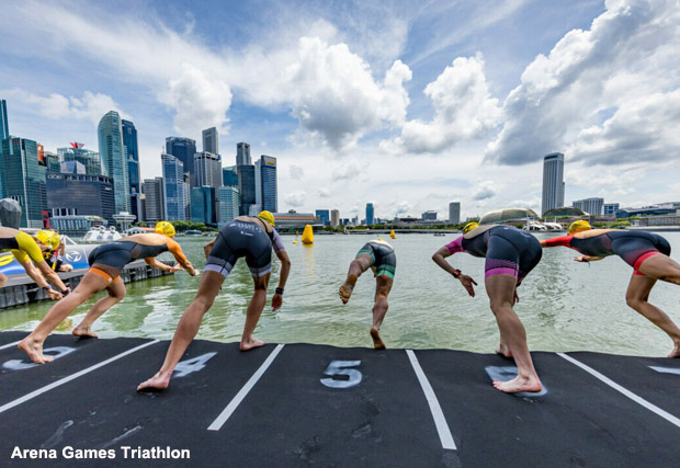 Action began in a swim-bike-run order. Munich winner Aurelien Raphael of France won the swim by 6 seconds, but lost that right away by wrong route in transition and so emerged in 10th and well back in transition. Last out of the outdoor Marina water, Yee ran to second on the curved treadmill, 5 seconds behind Arena Games rookie Wilde. By the finish of the treadmill run, Yee and Wilde were 18 seconds ahead of London winner Nieschlag. Raphael, who began the series with an impressive win, was 10th and last, 44 seconds back in the stage, any hope of a series win dashed.