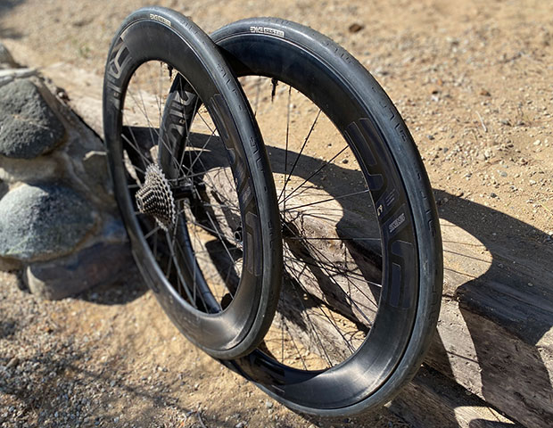 ENVE deploys its 40-tooth ratchet hub in this wheelset and the set I’ve been using has an XDR driver, and there’s a SRAM 12-speed cassette on the wheels you see here. Shimano is of course available as an option and as with all current wheels made by just about every reputable brand the driver bodies are easily interchangeable by the user.