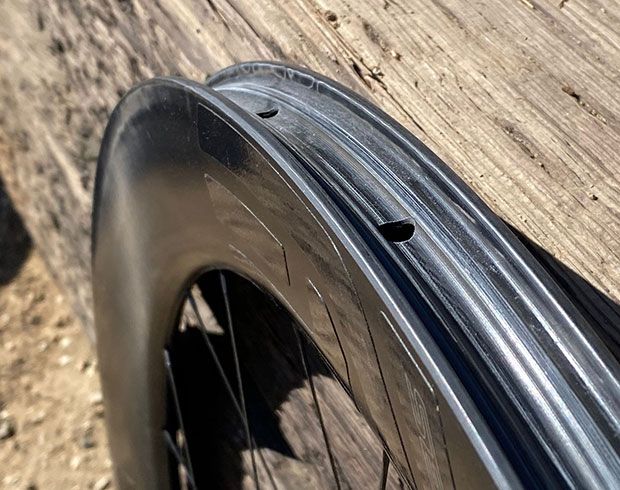 I’ve been using this wheelset for a few weeks with ENVE’s own 27mm SES Road Tire and that tire performs pretty well in independent rolling resistance testing. It’s among the fastest vulcanized tubeless road tires, and surprisingly (to me) doesn’t experience much if any sidewall leak at pressure without sealant installed, but of course you must ride it with sealant installed, for a number of reasons. There certainly is not the annoying amount of leakdown you might experience with, say, a skinwall tire.