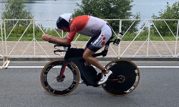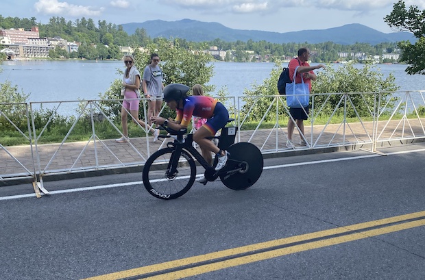 Michael Weiss, always a strong cyclist, in pursuit on Mirror Lake Drive. He'd eventually finish second.