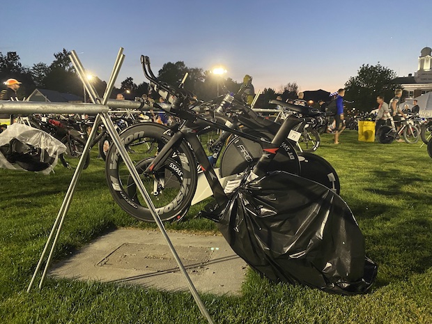 Matt Russell's A-Squared bike. Yes, even IRONMAN champions will still sometimes cover their bikes.
