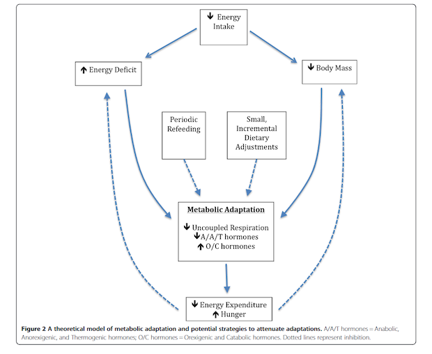 Image Source: Trexler, E, Smith-Ryan, A., & Norton L. (2014). Metabolic adaptation to weigh loss: implication for the athlete. Journal of the International Society of Sport Nutrition, 11(7), 1-7.