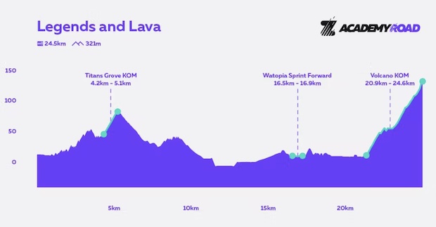On the ZA Baseline Ride you can ride at your own pace, but you will be prompted by on-screen messages to go all out during three segments on the Legends and Lava route. You will want to be up to full speed before the start of each segment for your best possible results. If you are registered for Zwift Academy Road, you will receive an e-mail to learn more about your rider type based on your baseline ride.