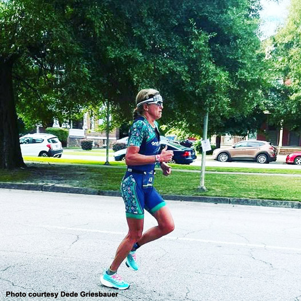 On the bike, Griesbauer celebrated her 52nd birthday by hitting the afterburners on her way to a women’s-best 2:17:06 split that gave her a 2:30 lead on Alexander, 2:41 on Lucas, and 4:22 on Sarah Bishop.