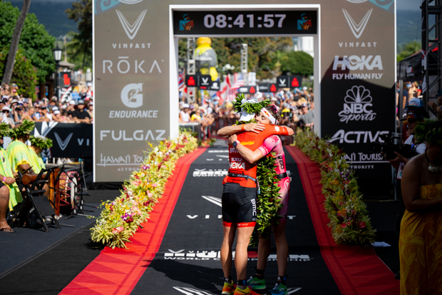 But for Sodaro, the IM operations team mirrors much of what she has surrounding her for a support team. “This is a real family operation. I don’t have a super big flashy team around me, but I have an incredible team. My dad has sagged every ride in the last month, my mom has taken care of my daughter because child care has been such a struggle, my husband is a Reno firefighter, this is really hard! This is for them!” Exclaimed as her daughter, Skye, tried to grab Sodaro’s award winning lei, “This is a life highlight. I will never forget this.”