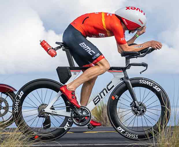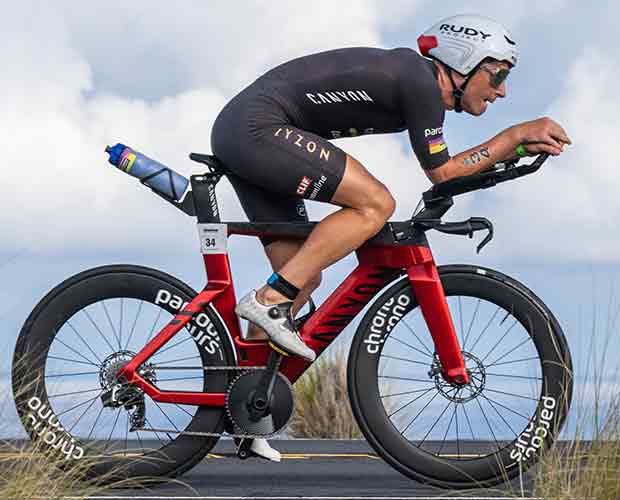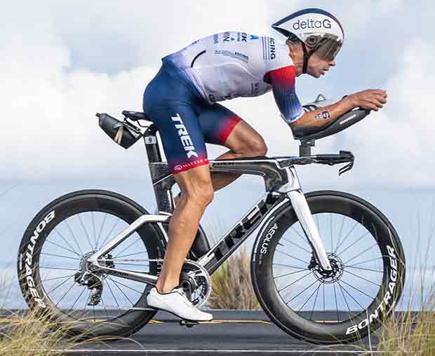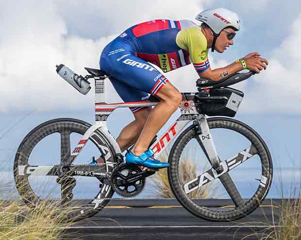 The 3 images above show, highest up, Sam Laidlow, who set a new bike course record in Kona of 4:04:36. Just underneath is a pic of the overall race winner Gustav Iden. Just above is Colin Chartier and while he did not have the day he wanted in Kona he is fresh off a huge win at the Dallas PTO US Open race. What Chartier does not have is a set of these new-style aerobars. But I think if you look at these pics above – minus Laidlow – along with the pic below of Braden Currie, you’ll see a pretty similar posture aboard the bike. This is still the consensus position and if there are any changes it’s a very slightly more tilted aerobar.