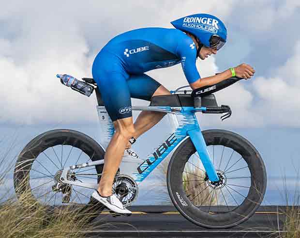 But Svensson and Amberger were outliers in Kona. It doesn't mean they were wrong. But a more representative position is the one struck by Max Neumann below, with a slight bit more of an upward tilt of the aerobars than you’d have seen in prior years, and a pretty much a right angle between forearms and torso. This is what we’ve seen from triathletes almost since the advent of aerobars in 1987. Neumann was one of this year’s big Kona surprises, with just a textbook traditional position.