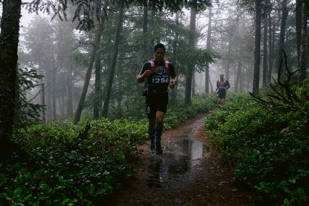 Ben Paxton and Nargus Harounzadeh on the very technical Moore's Wall descent on the way to second place in the mixed division. This section requires full focus and agility – and great trail running skills are very helpful here.