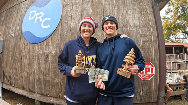 The Navy Tri Co-Ed team of Eli Waltz and Joseph Bell placed third in the mixed division and then had a long drive back to the Naval Academy. They were super thrilled to have done well here after having raced hard the day before too.