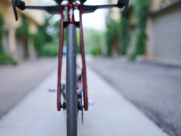 The other fork that tested better than just about everything was a strange design by Dan Wynn, a custom builder in Washington State. This was also a steel fork, but its characteristic was its blades that remained parallel to each other, rather than tapering toward each other and meeting at the fork crown. I don’t have an image of it but the blades were – as I say – parallel to each other as they are with this Kú below, and like the CADEX. The Shiv Disc’s blades are not quite vertical.