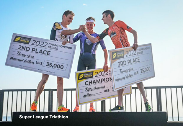 Hayden Wilde of New Zealand became the 2022 Men’s Super League Triathlon Champion by finishing third in the Grand Final and rounding won the 5-race series with 3 victories and two third place finishes. Matthew Hauser of Australia won the Grand Final round in NEOM and second in the series with two wins, a 2nd, a 4th and a DNF at Malibu. When the series was standings were totaled, Wilde led Hauser 74 points to 61. Finishing the series with a flourish, Jonny Brownlee of Great Britain took second at NEOM and 3rd in the series with 50 points.