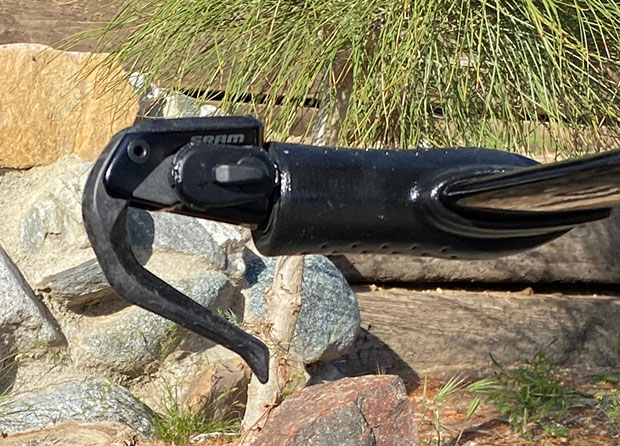 To recap, what this KÚ bike comes with is a SRAM AXS shift system and the extensions are the Zipp Vuka Shift AXS 90 and I write about these here. These extensions have the shifters built into them and that’s really neat! Wireless!