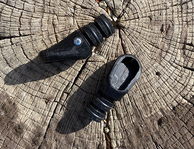 I wrapped one lap of black plastic tape around the plug and that gave it just enough stiction to stay put. Gorilla glue works pretty well to glue the Wireless Blip onto this mount and I left the freshly glued shifter to cure overnight. This is the result.