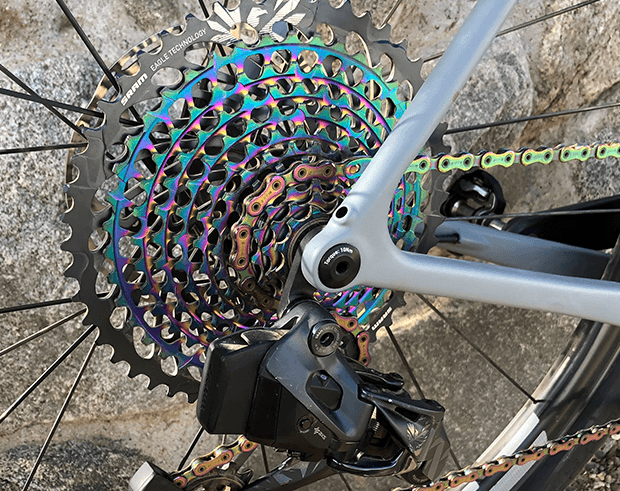 Then came the groupset and after having ridden a lot of 1x and 2x, what I settled on for my purpose is what SRAM calls its Mullet Config, which is MTB behind the cranks (rear derailleur, chain, cassette) and road from the crank forward (crank, BB, shifters, brakes). It’s all hydraulic and all electronic. For me, RED is jewelry, Force is all-function no-bling. So, it was SRAM Eagle behind the BB and SRAM Force AXS on the road components. Yes, SRAM makes a fully integrated 1x AXS groupset, called XPLR, but I find that this is more a road or tri groupset, because Eagle gets me that 10-50 cassette and that’s killer if you’re riding up 20 percent pitches (which often occurs where I live) and I’m in my 42×50 whenever I’m riding anything steeper than 12%.