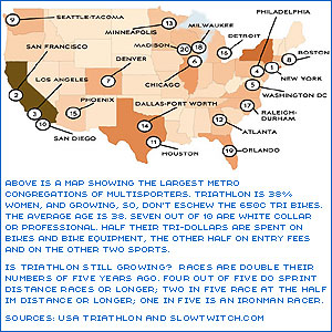 Where do you think most American triathletes live? In which states? Cities? Metro areas? If your best guesses are based on what you thought a decade, or even five years, ago, you’ll be surprised.