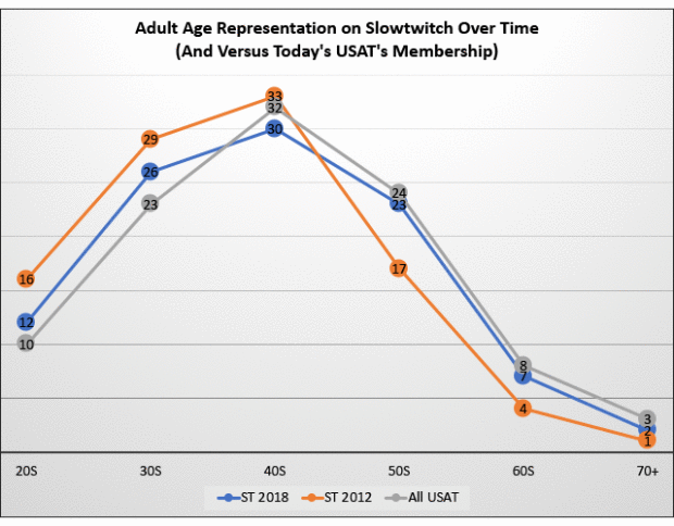 How has the age and gender makeup of both Slowtwitch and USAT changed over the years?