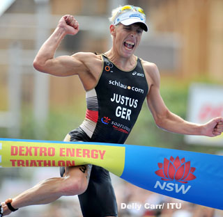 Steffen Justus of Germany won his first ITU World Triathlon Series event with a victory at Sydney; Richard Murray of South Africa took a breakthrough 2nd and Laurent Vidal of France was 3rd.