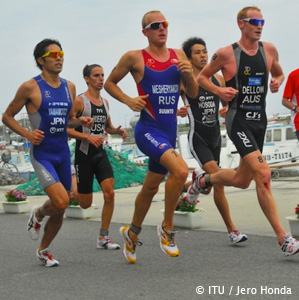 Valentin Meshcheryakov of Russia outsprinted Japan’s Yuichi Hosoda to win the Ishigaki ITU World Cup and earn his first podium finish. Early leader Clayton Fettell from Australia fell to 5th on the run.