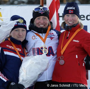 Rebecca Dussault, Emma Garrand and Heather Best of the USA dominate women’s ITU Winter Triathlon world championship team gold; Norway takes the men’s title, US men 7th.