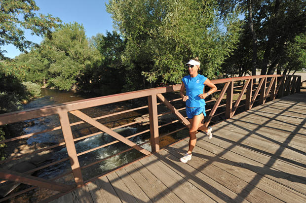 Belinda Granger, an 11-time Ironman and Ironman-distance champion, was photographed training in Boulder.
