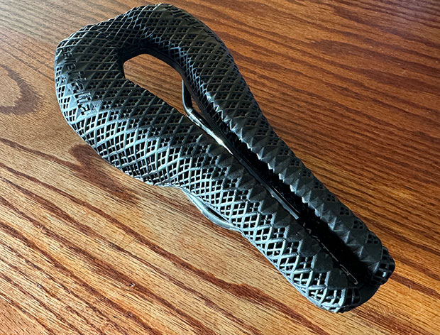 But there is some movement toward a saddle style that isn’t quite traditional single nose and isn’t quite split or double nose. That saddle pictured highest up is Selle Italia’s Watt 3D and that’s pretty new to the market. You see it here below as well.