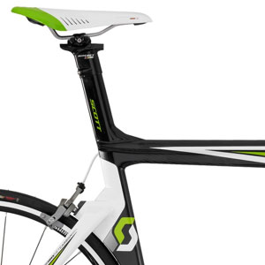 Scott's Plasmas, like Kuota's Kueen K and Ridley's Dean, features seat masts that you cut to size. The drawback is that it can make the bike less compact for shipping, and when you cut the mast, well, it's cut. You've personalized it. Best you executed the cut correctly, these seat post caps have several centimeters of upsy-downsy, and no more. On the plus side: this design makes for a stronger, lighter seat cluster area, and you don't have to worry about seat binder bolts either stripping out of the frame, or being not tight enough to keep the seat post from slipping.