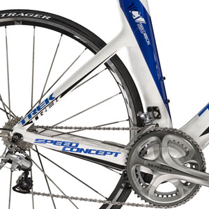 It seems to be the case that most of the major bike manufacturers are spec'ing Shimano Ultegra for their circa-$3500 bikes. Cannondale, Cervelo and Scott are all spec'ing Ultegra along with Trek (Felt bucks the trend, and chooses to go with a SRAM Red mix on its B12). The Speed Concept 7.5 is outfitted with Ultegra cranks, Ultegra front and rear derailleurs and brake calipers. Only on consumables, such as the cassette, does the spec dip to 105.