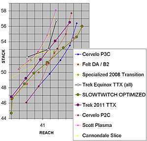 The Equinox TTX was a bit of a geometric chameleon. Depending on the frame size, the geometric personality of the bike changed. Not so with the Speed Concept. It's graded straight and true—each size strikes the same geometric pose as the next.