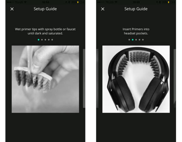 If the start screen does not display, a user will likely receive a "poor contact" error on the mobile app along with a visual of the strength of the connection via a 3 bar display indicating the strength of the connection with 3 bars indicating a need for major adjustments. Anytime I encountered the poor contact error I found it could be corrected via the following troubleshooting, in order: tighten/wiggle the headphones; add more water to the primers; clean the primers. If the poor contact error was the result of the primers requiring cleaning, it was still possible to use the device but it required significant tightening of the headset to a point that it was a bit uncomfortable.