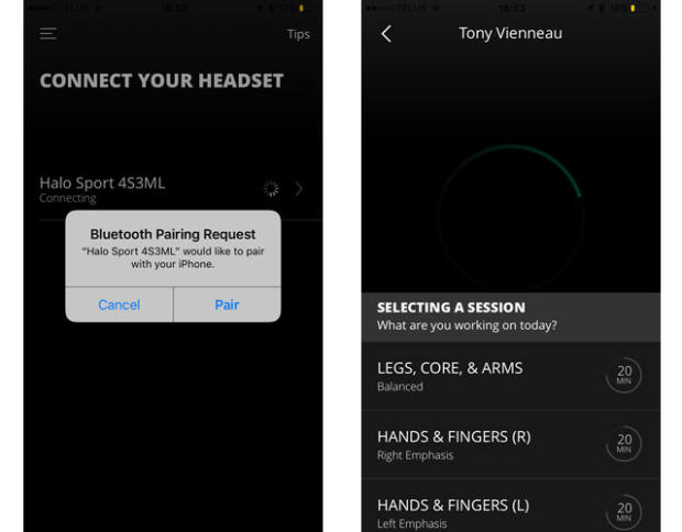 The Halo Sport works in a similar fashion to a pair of BTLE headphones. The headset is turned on via a silver power button located on the right earpiece and once activated, a flashing green light illuminates near the power button. Next, the user pairs the headset to the mobile app, which will locate Halo Sport and confirm the pairing. Once paired, the app will prompt you to choose your type of neuropriming session (i.e. Hands and Fingers or Legs, Core, and Arms). Endurance athletes will primarily use the Legs, Core, and Arms session as the other is meant primarily for fine motor movements, which I did not test.