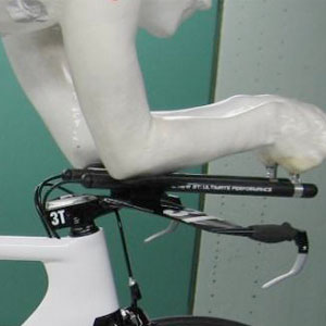 In the case of the Trinity Advanced, there was no pedestal under the armrest, and I think this is the size I'd have chosen. The Plasma Premium, I'd have sized up. This, because the bike was impossibly narrow for the DZ dummy. Cervelo wrote: In order to match Cervélo’s wind tunnel testing mannequin fit coordinates, the Scott Plasma3’s stock 90mm stem was replaced with a 110mm 3T stem. Modeling clay was applied to the 3T stem to match and complete the surfaces and features of the original Scott stem as closely as possible.