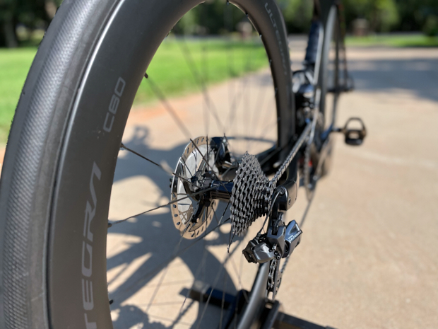 So knowing that I couldn't get my hands on 12 speed (at the time) and also knowing I wanted an all around wheel. Shimano's C60 Ultegras was the path forward. They're a 60mm deep beaded full carbon tubeless wheel. The significance of this is that this was the first time that shimano made a 60 mm deep rim in the Ultegra line. They share the same rim depth as the Dura Ace C60’s but without the extra lateral stiffness ( They have 2 less spokes) that honestly I don't really care to have or need for what I'm doing. With the 21mm internal & 28mm external rim width they allow for a tire range from 25-32. But more importantly they allow for 11 speed compatibility and I liked the simplicity of the design/paint/decals, as in my experience stickers never seem to last.