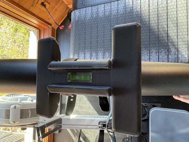 I’ve had mine for a little over a month now. It was very straightforward to put together. The Up System came in a small duffle size fabric bag with the components wrapped inside. We have a Woodway treadmill that required an adapter. It’s a 3D printed plastic adapter with two straps and a level already built inside. Just set it on the bar, put the bubble in the middle and strap it down.