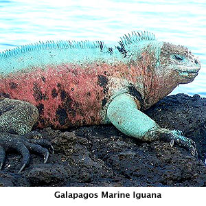 In the 1930's, the island of Floreana was a life-is-stranger-than-fiction setting for drama and mystery. As described in a brochure that remains unavailable locally: "A German dentist and his mistress, a young family (the Wittmer family who still live on the island) and a self-styled baroness with three men came to settle in the island. Shortly after the baroness and her lovers arrived chaos began. They terrorized the other inhabitants while planning to build a luxury hotel. Eventually the baroness, her two lovers and the dentist all turned up missing or dead." One of the lovers was allegedly poisoned by eating tainted chicken, provided by the Wittmer family, who to this day, runs the only hotel and restaurant on the island, and whose hospitality we were able to receive. Iguanas greeted us, our first view of the colourful male marine iguana of Floreana Island, both larger and brighter than related species on other islands. Our bags were transported to the settlement of Puerto Velasco Ibarra by a 1930's era modified farm tractor to the only hotel, down the road, an oceanfront location that made up for any lack of creature comforts. One glance at the electric showerhead and I was more than delighted that it was hard-wired to the ceiling receptacle, with no breaker box in sight. We had a swim and relaxing time on the oceanfront patio and dinner at the only restaurant in town, run by the grand-daughter of Wittmer family. We had fish for dinner, thankful to avoid the chicken. The island's 60 or so inhabitants live a quiet and rural life surrounded by nature and solitude, and it was easy to see why foreigners landing at this site could be forgiven for entertaining the thought of building a luxury hotel. Fortunately, at least for Floreana, that threat has passed. For some of the other islands, however, tourists are increasingly loving the islands to death, and several island-wide conservation programs are underway.