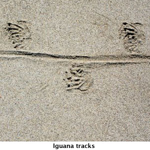 The following morning I went for a pre-breakfast run out to Tortuga bay- turtle bay, reached by what was certainly a backbreaking project to create a 2 km long stone path. Gently following the undulating land through protected coastal shrubs, the tripping hazard the only distraction from the scenery. At the start of the path, a guard house is manned for 15 hours a day (the path is locked at night). The registration book I was forced to sign is hilarious…form over content, and I added my name to what became three pages of names by the end of the day, and a fine example of a bureaucratic waste of resources. The path finally ended at a magical beach, stretching a distance in both directions and nearly desolate, just a few other joggers enjoying the sunrise, and a host of iguanas on the rocks and sand. Intending to capture the magical moment and a cooperative iguana, I positioned my digital camera on a rock with the self-timer. Unfortunately, the camera toppled over and took a swim in a small pool of salt water the tide had left in front of the rock, putting a swift and unfair end to the camera's life. It had lived several productive years and earned its place in the electronic hall of fame.