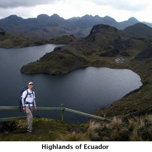 Finally able to escape the confines of the car, we hiked from this tall summit through high alpine fields of tundra-like flowers and boggy mud from recent rains. The four hour hike descended through a rolling terrain of ancient volcanic debris, past pristine lakes stocked with trout, and no man-made construction other than some basic trail features such as some rough steps. We met few other people, a sharp contrast to the bustling city of Quito, not far away. As fit triathletes, we made excellent time on the track, our guide thrilled to have a rare opportunity to break a sweat with his clients. An excellent surface for trail running, we instead opted for a hiking pace to enjoy the scenery, and to minimize the effects of altitude.