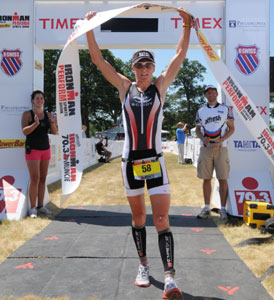 Out on the run Cave started to slow down and the fast running Rollison was starting to gain on her, having passed Griesbauer for second place earlier. Meanwhile a bit further back Williamson was running fast too and slowly moved through the field from 6th position after the bike. Aussie Rollison caught Cave around mile 8 and crossed the line in 4:08:48 to take the title. Williamson snagged second place from Cave and the Brit had to settle for the final podium spot.