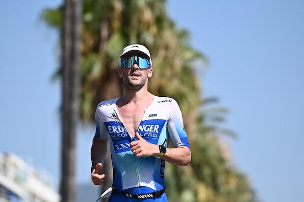 To the final loop of the Promenade des Anglais and it was Laidlow’s race to lose. With 10.5 kilometers left to run and the lead sat at 5:48. Lange’s blistering run pace had him in third, 44 seconds from taking second, but not closing at a gap that would see him overtake Laidlow. Despite losing touch with Ditlev and Lange, von Berg continued to run well in fourth, and barring a catastrophe from himself or the athletes in front of him, would likely finish there.