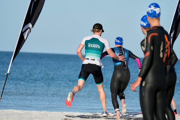 In addition to the triathlete couples who competed, the event featured a relay consisting of swim splits from three time gold medalist Brooke Bennett, bike splits from ex-pro cyclist Phil Gaimon, and run splits from Ashleigh Gentle and gold medalist Gwen Jorgenson. Prior to the podium awards, Waterfall Bank presented $120,000 in donations to local charities, showing their generosity extends beyond the pro athletes supported on the day.