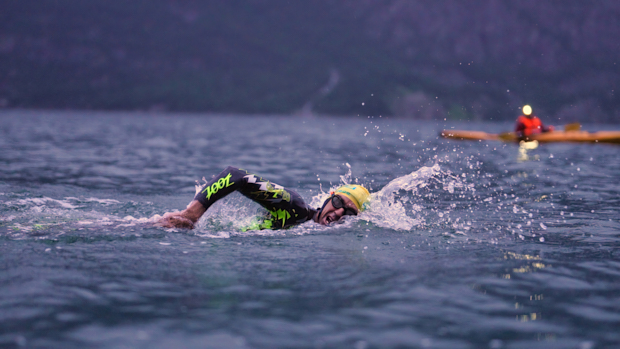 DJ and I boarded the ferry for the swim start at 4AM, and 40 minutes later we arrived at the race start in the middle of the fjord. After suiting up and giving my wife a quick call, the race official gave us the green light to get into the water. After jumping into the 59 degree, 1300 foot deep water, I did a few backstrokes and looked into the sky and said a quick prayer for allowing me to get here and be a part of something so special.