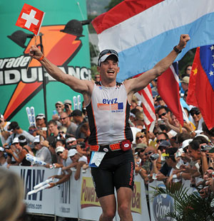 Ronnie: My main sponsor is ewz, a big energy company in Zurich Switzerland. I am working with them since I started my triathlon career. I also signed with Cannondale for 2009 riding a Slice. It’s crazy stiff, light and still comfy. I have run in Pumas now for a few years. Biestmilch is the only supplement I am using. It’s a special protein and works very good for me. I also used a Fuel Belt in Hawaii last year and I loved it. It’s really helping me with hydration and stabilization.