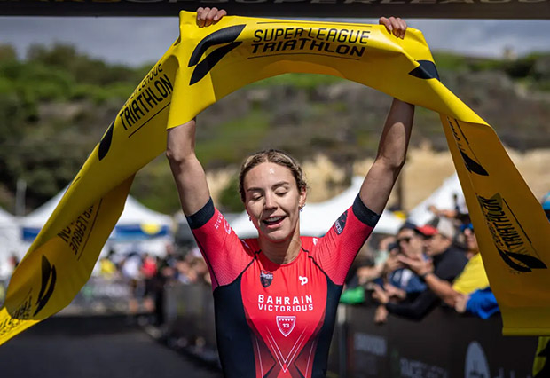 Cassandre Beaugrand made her Super League Triathlon debut by an 8.7 seconds margin over fellow Frenchwoman Emma Lombardi with a strong final run. Beaugrand broke Lombardi on the final run leg, with Jeanne Lehair 12.5 seconds arears in third place. Perhaps tired by her recent great effort to win the WTCS World Championship in Ponte Vedra. Beth Potter took 4th with U.S.A. comeback kid Katie Zaferes in 5th.
