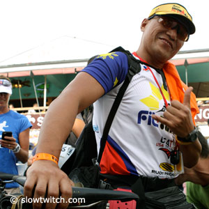 During the bike check-in in Kona we noticed Efraim Manzano who had Crocs mounted to his pedals. He indeed rode with them during this race, and then he switched to another pair of Crocs to run the marathon in those.