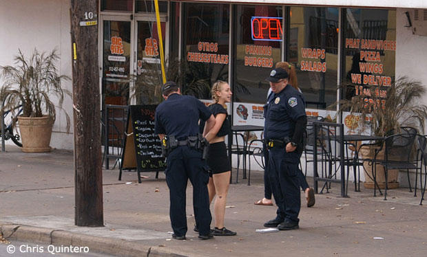 A female jogger in Austin, TX was grabbed by an officer of the Austin PD who appeared to be on jaywalk patrol and the situation escalated very quickly from there.