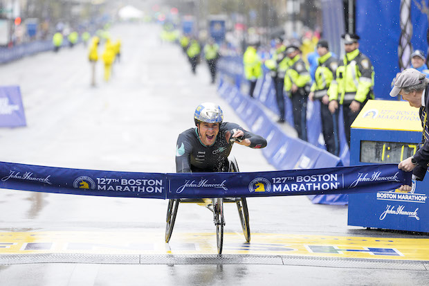 More than 30,000 athletes endured cooler temperatures, wind and rain for the 127th Boston Marathon.