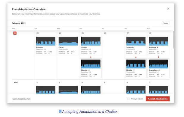 The subject can be daunting to approach, bringing new concepts and yet more new jargon and acronyms into training methodology – a subject already inundated with jargon, acronyms, complicated graphs, etc. But don’t despair. There may be hurdles along the way. But there should be a payoff at the end, not just in measurable performance, but in the enjoyment of the process. A guiding principle of TrainerRoad from the start has been maintaining a carefully curated, elegant user interface that doesn’t overwhelm users. From what we’ve seen so far, that principle is being maintained with Adaptive Training. And the other “smart” training platforms have similar elegant interfaces.