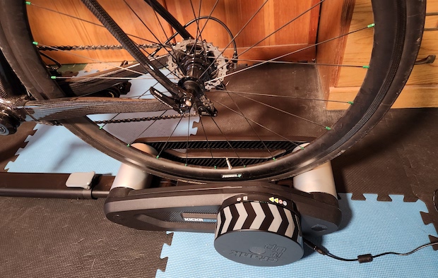 I refer to the Kickr Rollr as a semi-smart roller because it is dependent on pairing with a power meter to broadcast power measurement to apps and online riding platforms. However, you can still use the Kickr Rollr with virtual riding platforms that will estimate power based on the speed of the rollers (e.g., Zwift). Therefore, if you want to make the most of virtual terrain resistance and ERG mode, you'll need to pair a power meter to the trainer.